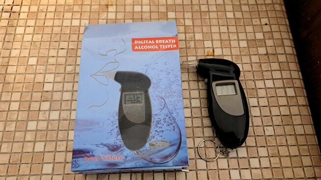 Cyfrowy alkomat do pomiaru stężenia alkoholu w wydychanym powietrzu. Urządzenie umożliwia szybkie i dokładne sprawdzenie ...